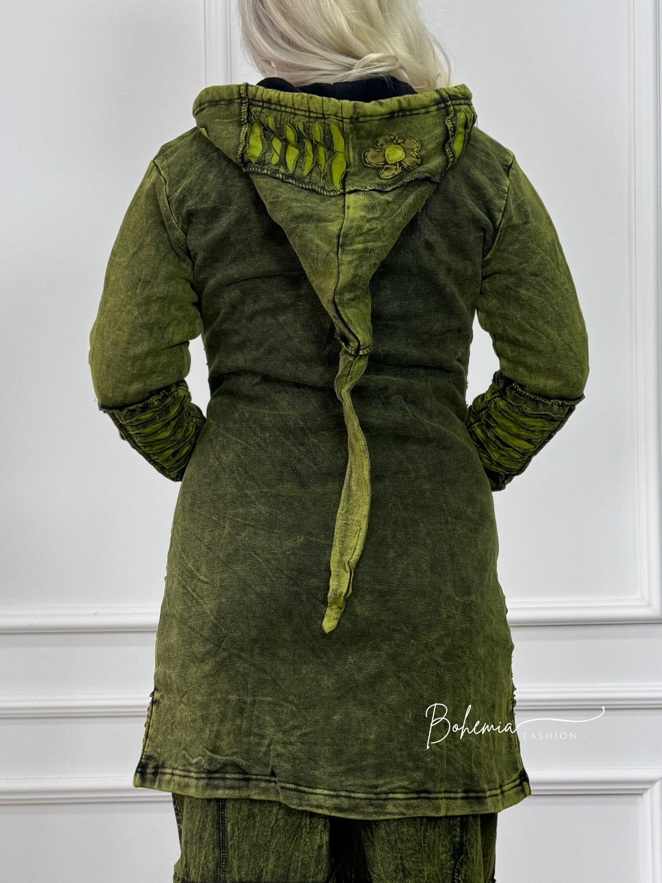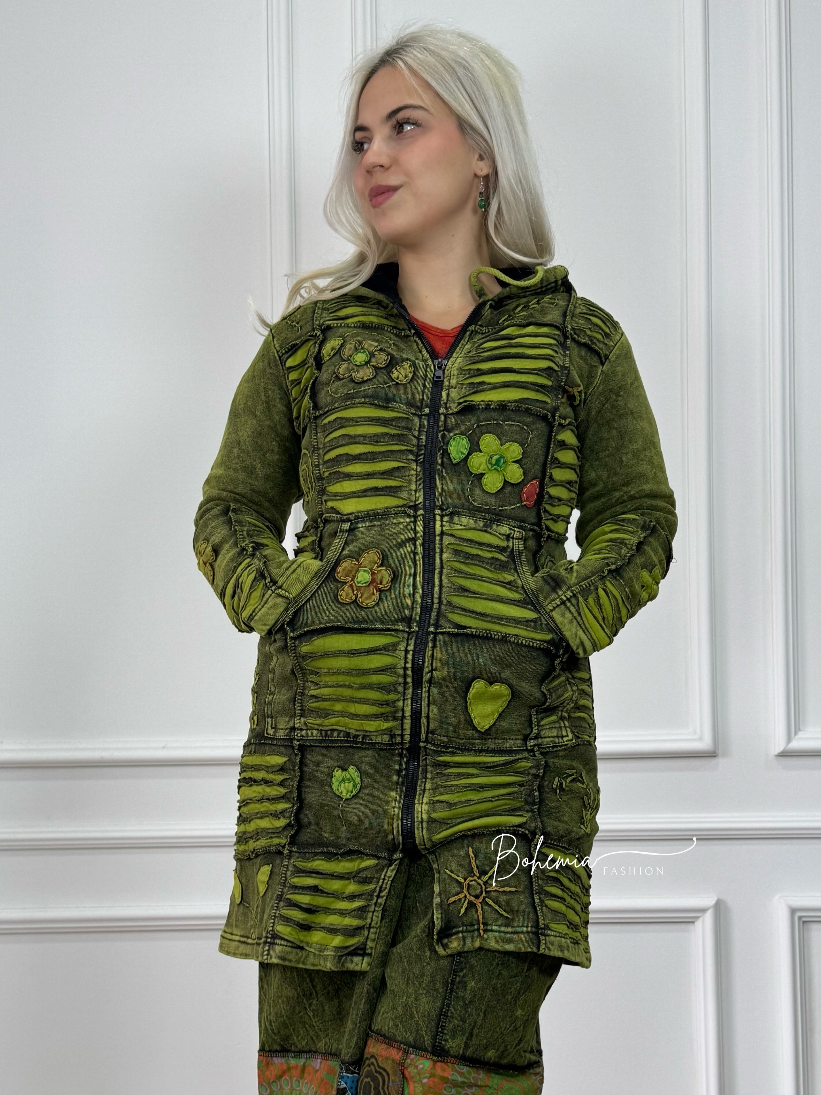 Cipzáros, pamut kardigán, puha polár béléssel és manókapucnival. Két oldalsó zsebbel. A belső polár bélés melegen tart, így ideális hűvös napokra. A virágok színe és elrendezése darabonként eltérhet, így minden kardigán egyedi megjelenést biztosít.