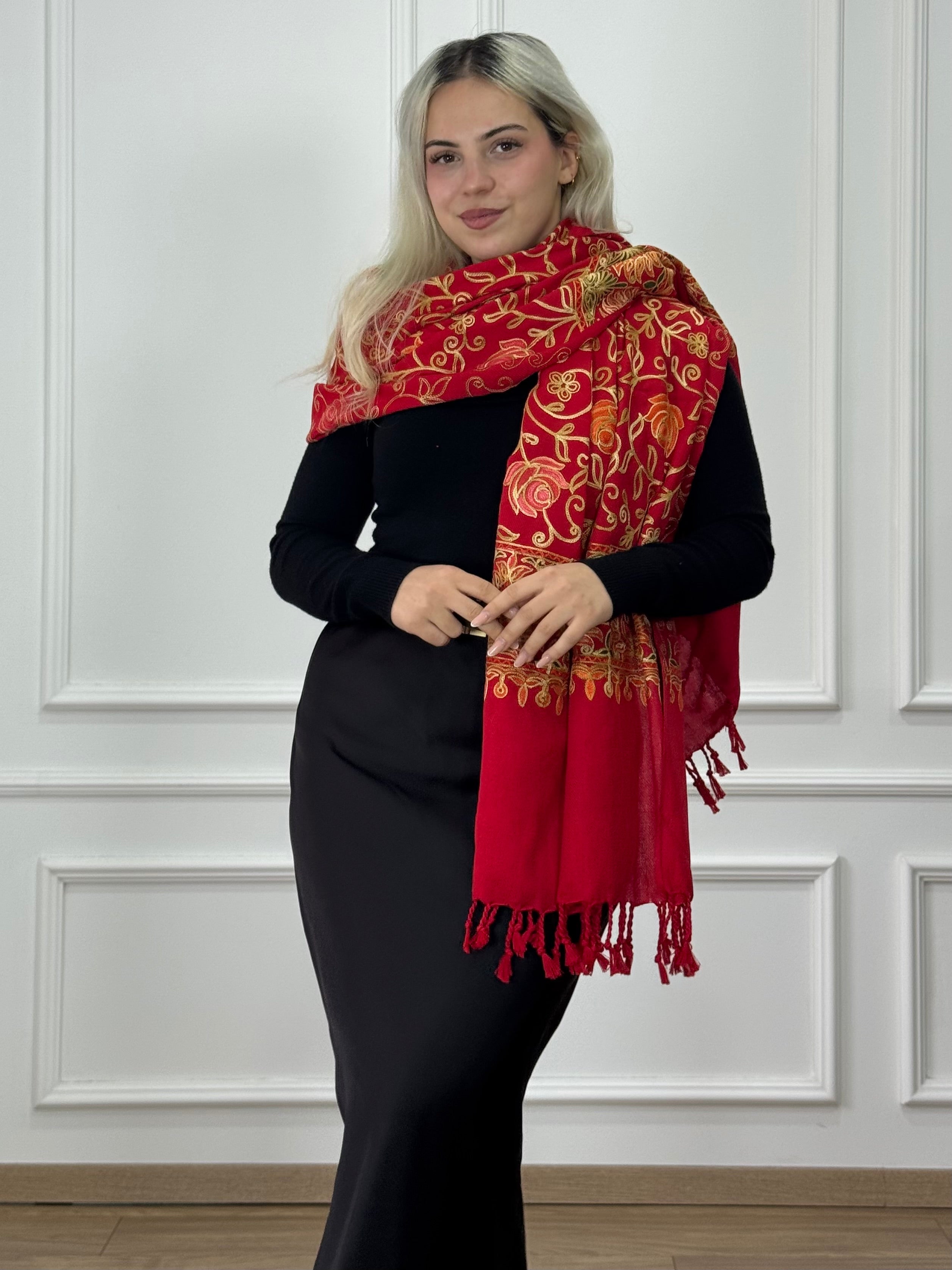 Ez a hímzett viszkóz stóla bájos virágmintáival varázsol el. Elegáns kiegészítőként tökéletes választás, amely feldobja bármelyik öltözéket. A stóla végeit dekoratív rojtok díszítik, harmonikus lezárást adva neki.
